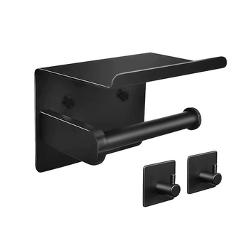 Venta caliente soporte de papel nuevo negro mate Acero inoxidable 2 ganchos para toallas con estante adhesivo juego de soporte de papel higiénico