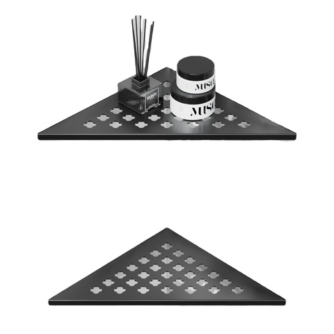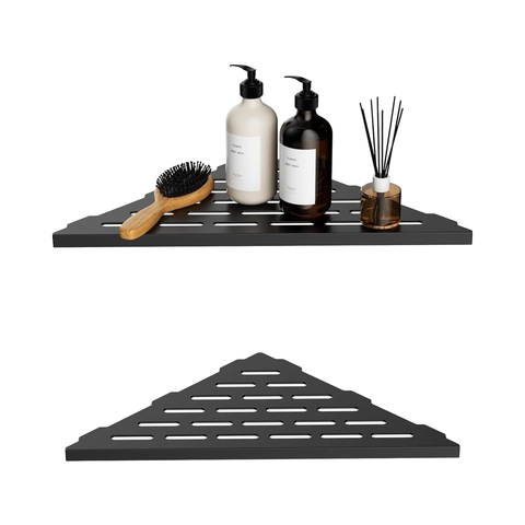 2パックブラックコーナー壁棚ドリル不要埋め込み設置304ステンレス鋼バスルームシェルフ10x10x0.4inch