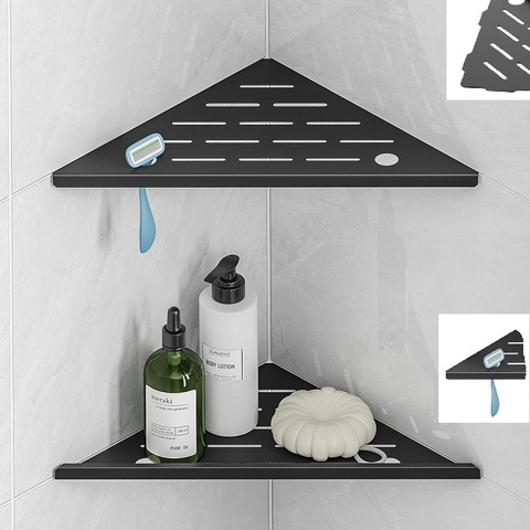 バスルームABSトライアングル収納ラックフック付きホームキッチン整理スタイリッシュな壁取り付けシャワーコーナー棚